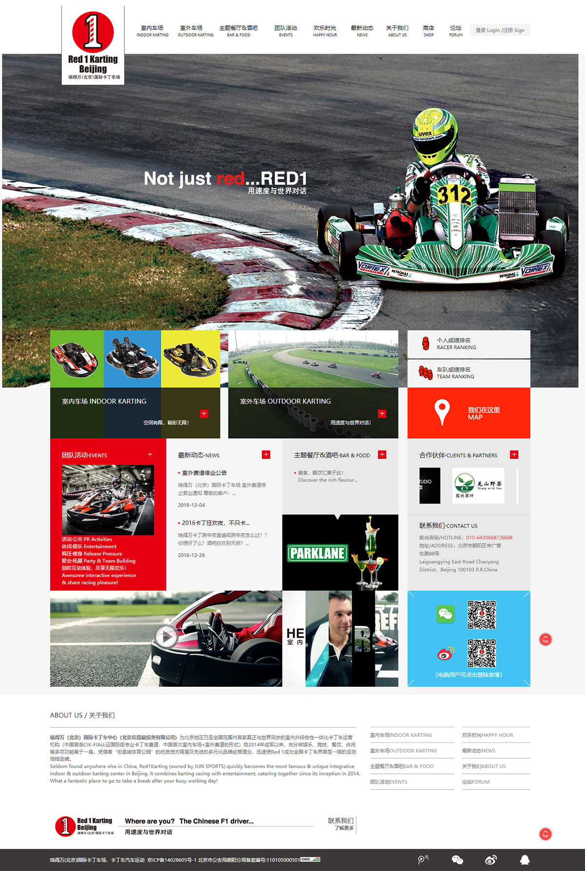 瑞得萬(wàn)(北京)國(guó)際卡丁車中心(北京宏昌竣投資有限公司)為北京地區(qū)乃至全國(guó)范圍內(nèi)首家真正與世界同步的室內(nèi)外綜合性一體化卡丁車運(yùn)營(yíng)機(jī)構(gòu)(中國(guó)首條CIK-FIA認(rèn)證國(guó)際級(jí)專業(yè)卡丁車賽道,中國(guó)首次室內(nèi)車場(chǎng)+室外賽道的形式)自2014年成軍以來(lái),充分將娛樂(lè)、競(jìng)技、餐飲、休閑等多項(xiàng)功能集于一身。憑借著“宏昌竣體育公園”的優(yōu)質(zhì)資方背景及先進(jìn)的多元化品牌經(jīng)營(yíng)理念,迅速使Red 1成為全國(guó)卡丁車界首屈一指的運(yùn)動(dòng)場(chǎng)館品牌。